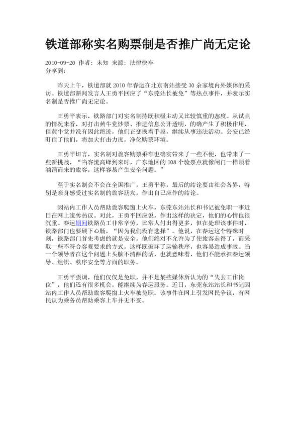 鐵道部稱(chēng)實(shí)名購(gòu)票制是否推廣尚無(wú)定論