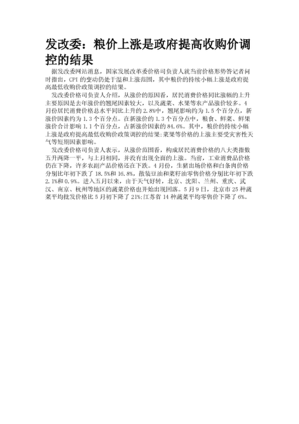 發(fā)改委:糧價(jià)上漲是政府提高收購(gòu)價(jià)調(diào)控的結(jié)果