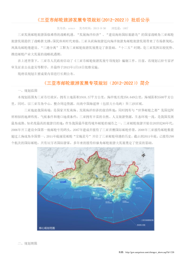 《三亞市郵輪旅游發(fā)展專項(xiàng)規(guī)劃(2012-2022)》批后公示
