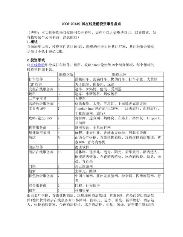2006-2013中國(guó)在線旅游投資事件盤(pán)點(diǎn)